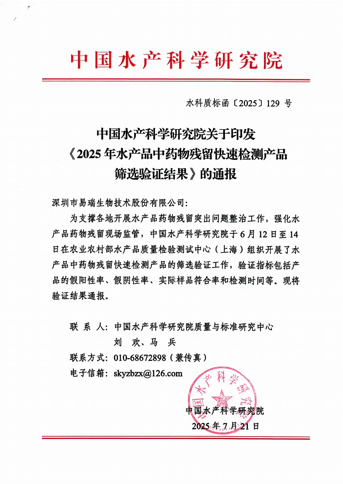 继 2024 年斩获中国水产科学研究院权威认证后,,,,,,,,18新利(股票代码:300942)在水产药物残留快速检测领域再传喜报!